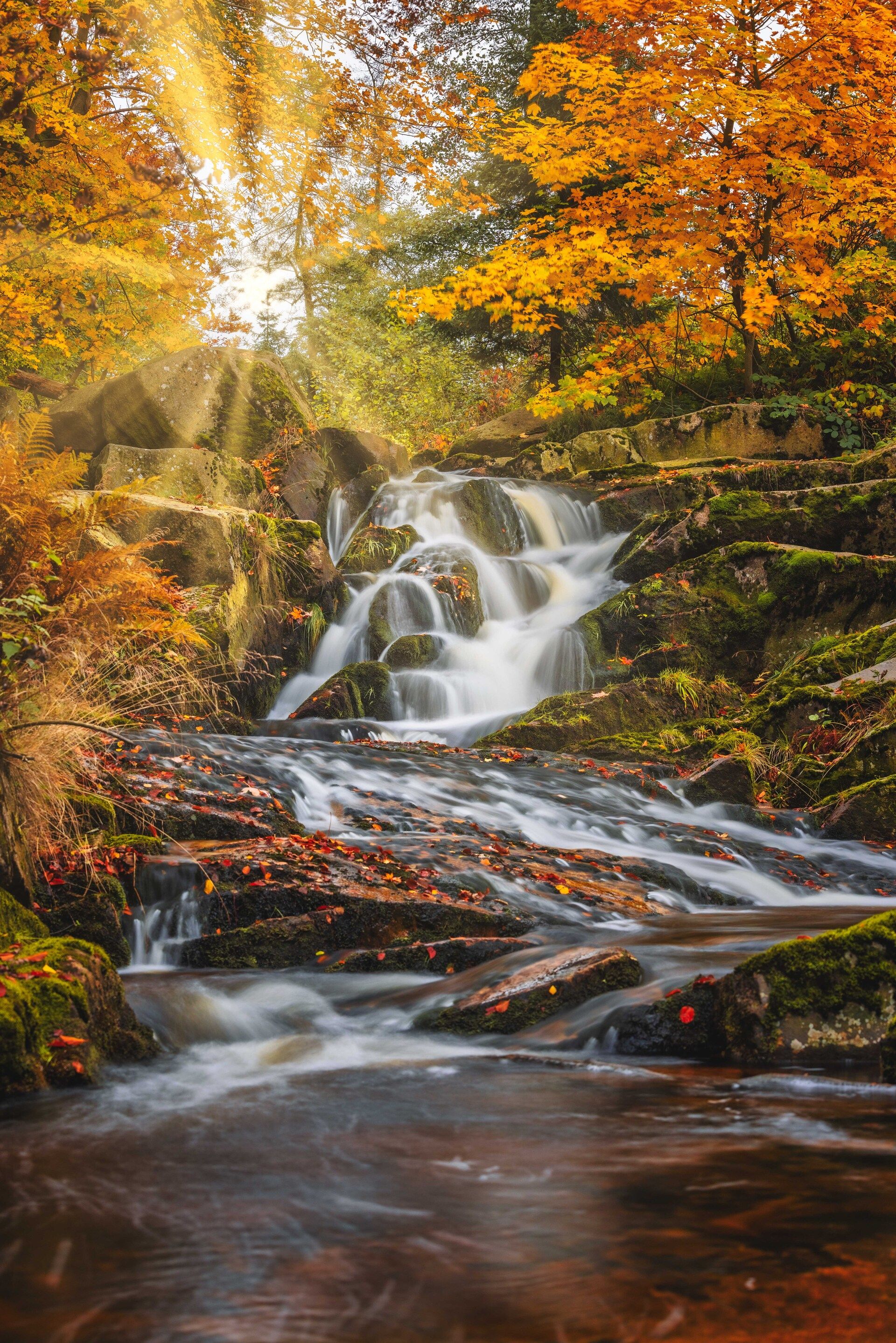 Das Ilsetal bei Ilsenburg ist im Herbst ein Ort, an dem die Natur ihre ganze Farbpalette zeigt. Zwischen moosbewachsenen Steinen, sanft plätschernden Bächen und leuchtendem Laub entfaltet sich ein faszinierendes Spiel aus Licht und Schatten – ideal für stimmungsvolle Landschaftsaufnahmen.